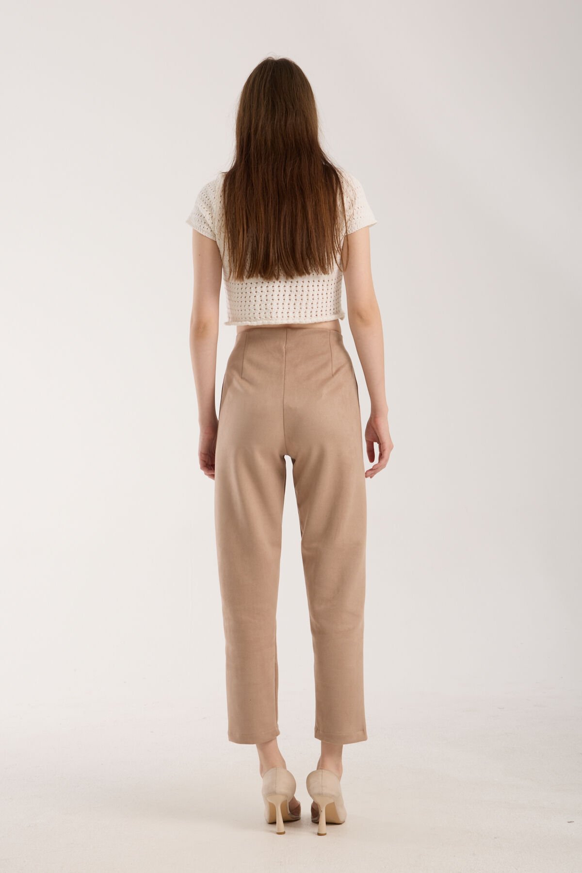 Winmoda kadın süet pantolon modeli, önden pens detaylı ve yüksek bel fermuar kapamalı formuyla modern bir duruş sergiler. Tam beden ölçülerde hazırlanan bu model, likralı süet kumaş yapısı sayesinde esneklik ve konforu bir araya getirir. Boyfriend kalıbı ve düz paça kesimiyle günlük ya da ofis kombinlerinde rahat bir görünüm sunar. Çift cepli tasarımı pratiklik kazandırırken, gipeli detayları feminen bir dokunuş oluşturur. Yarım pat fermuar detayı kolay giyilip çıkarılma avantajı sağlar. Baskısız, düz desenli yapısı minimalist bir şıklık yaratırken, kemersiz ve astarsız formu hafiflik hissi verir. %95 Polyester, %5 Elestan karışımı uzun ömürlü kullanım sunar. Casual / Günlük koleksiyonun parçası olarak her ortama uyum sağlar. Türkiye üretimi olan bu ekrü süet pantolon, zarif ve trend bir siluet arayan kadınlar için mükemmel bir seçimdir.