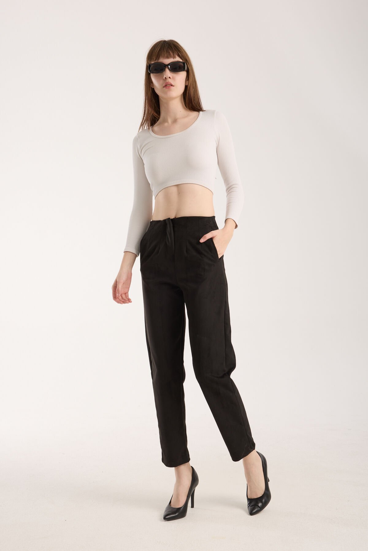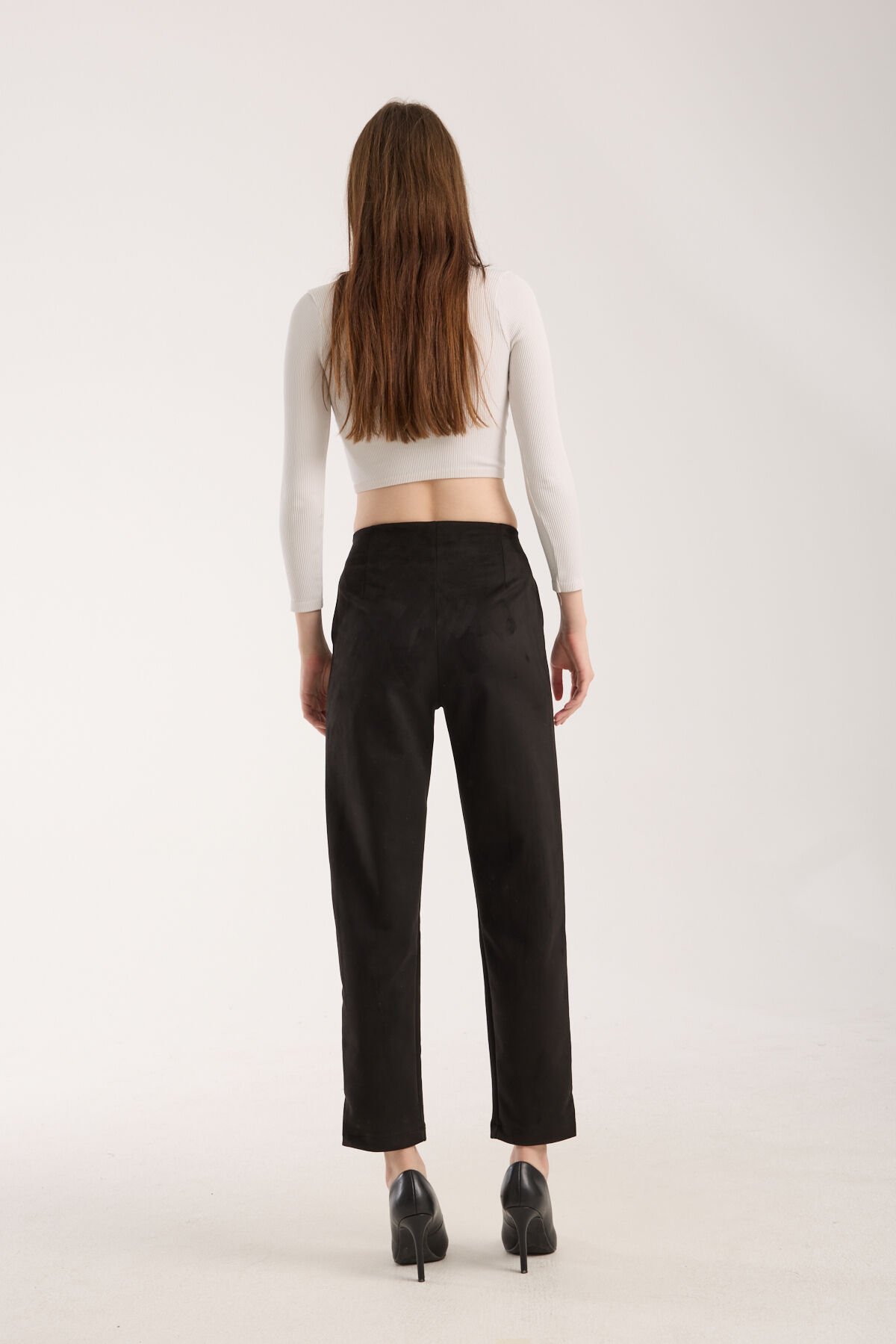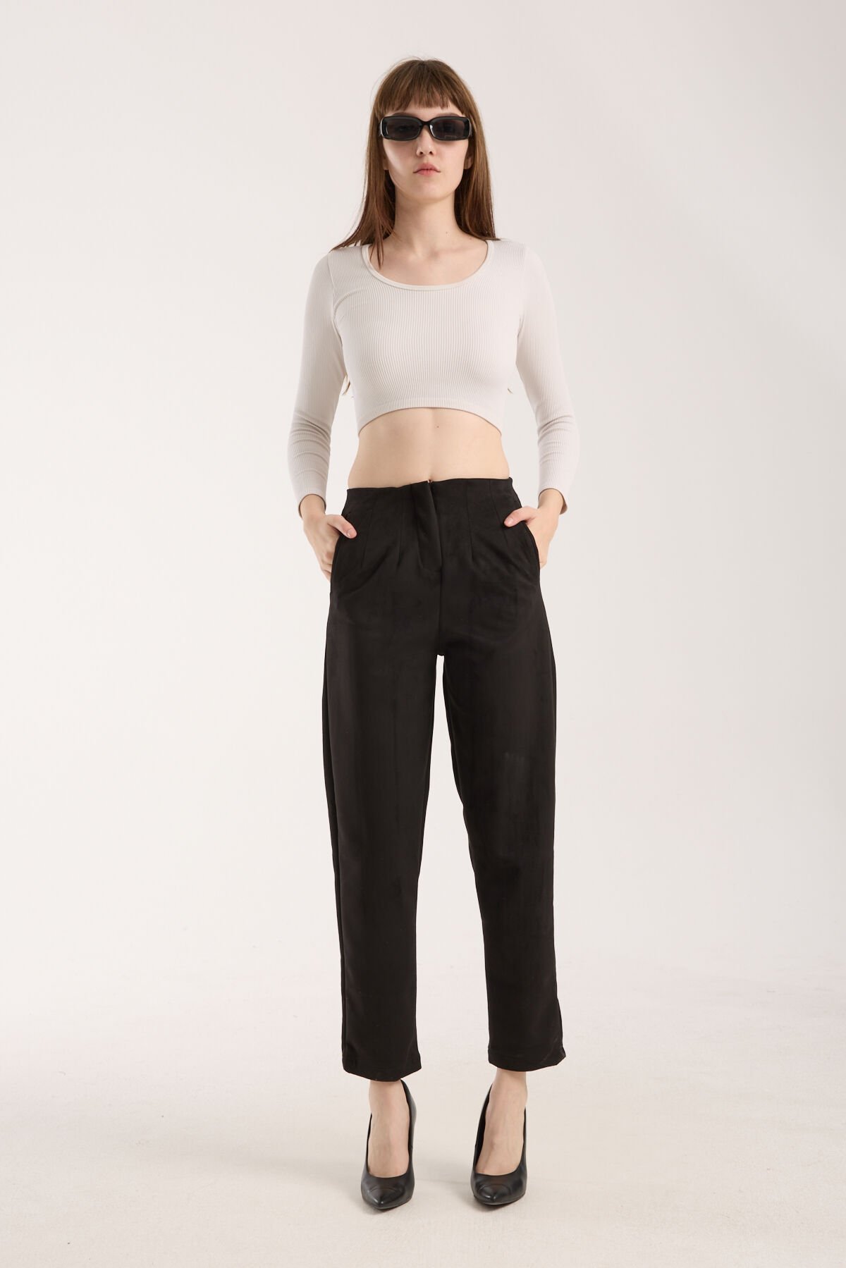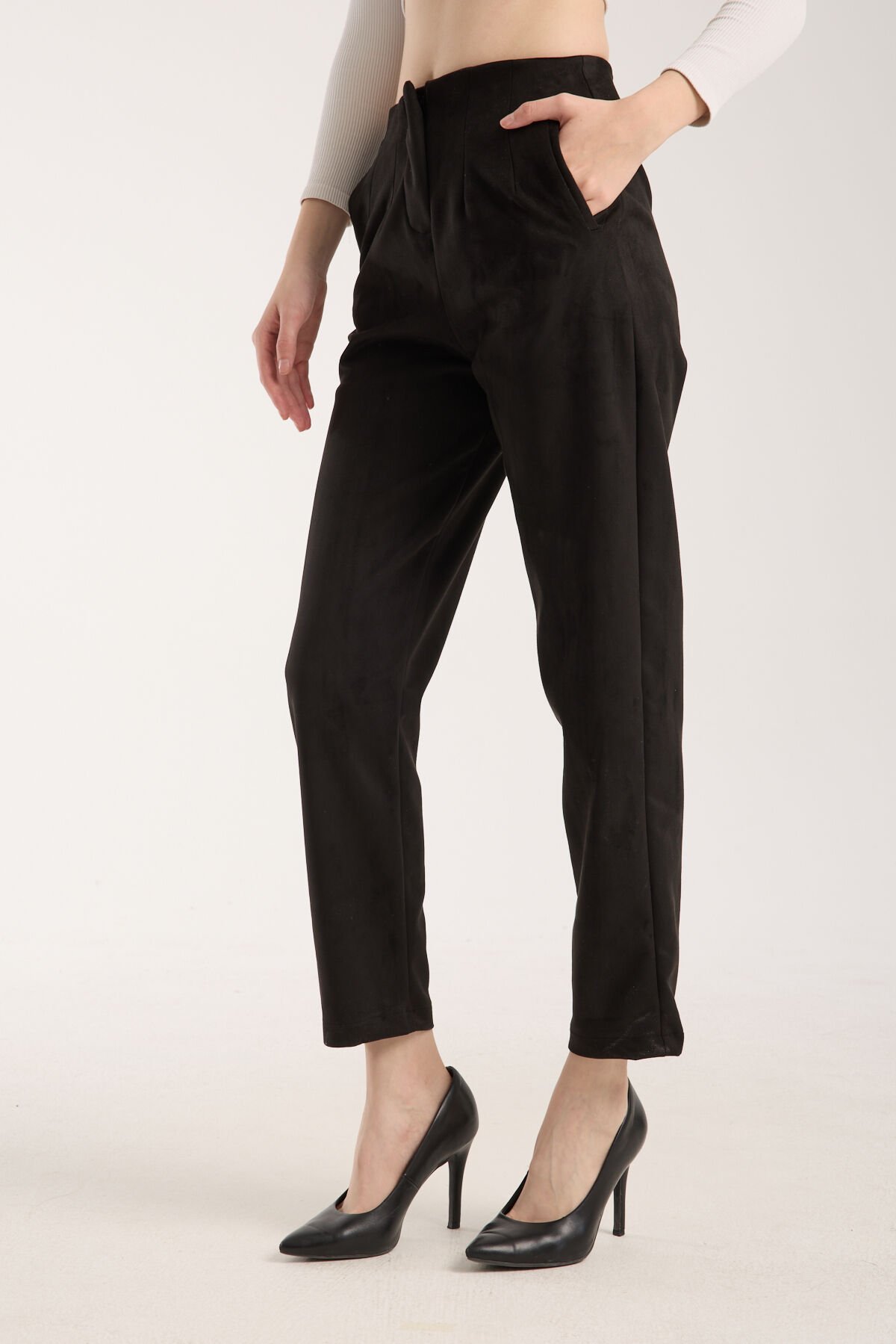 Kadın Pensli Süet Cepli Pantolon WM S - SİYAH