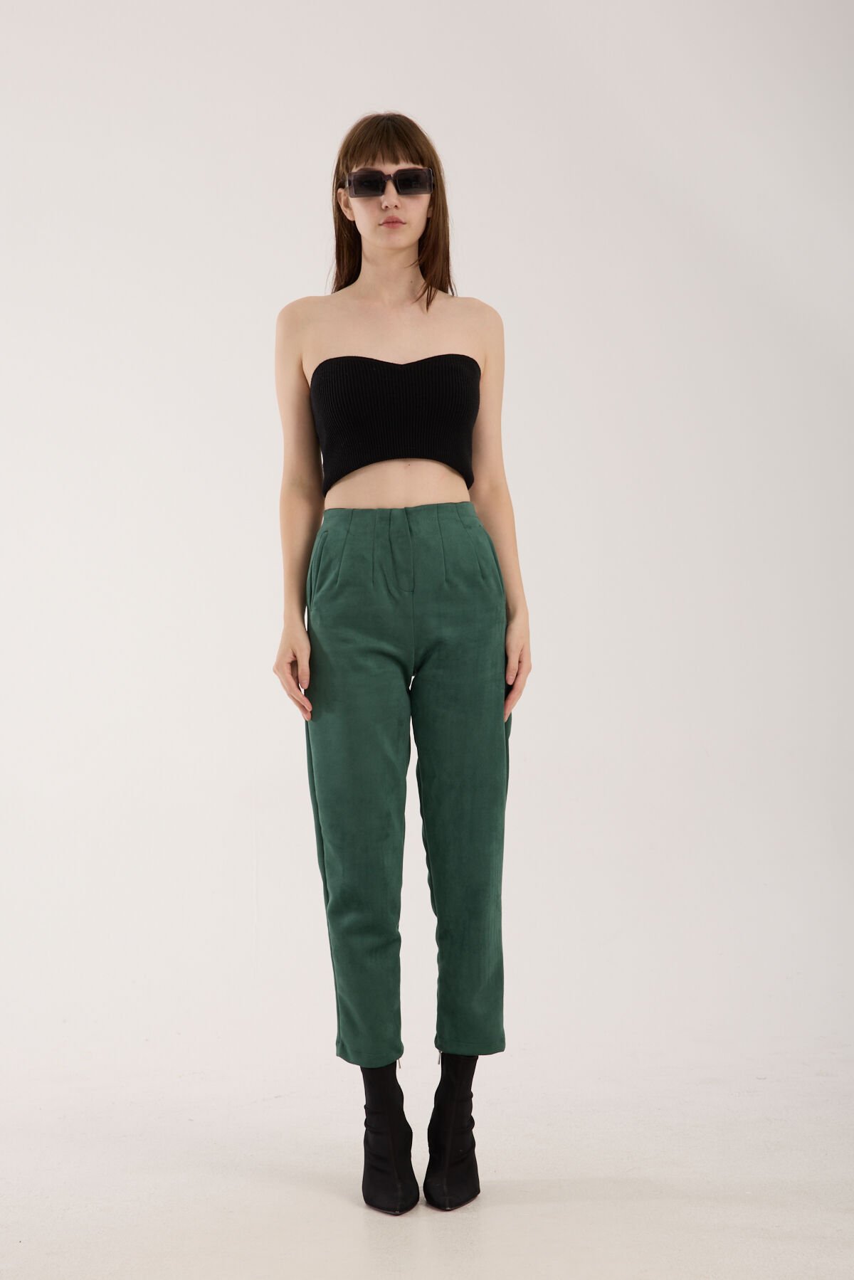 Kadın Pensli Süet Cepli Pantolon WM S - YEŞİL