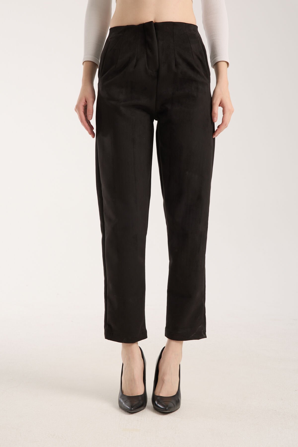 Kadın Pensli Süet Cepli Pantolon WM XS - SİYAH