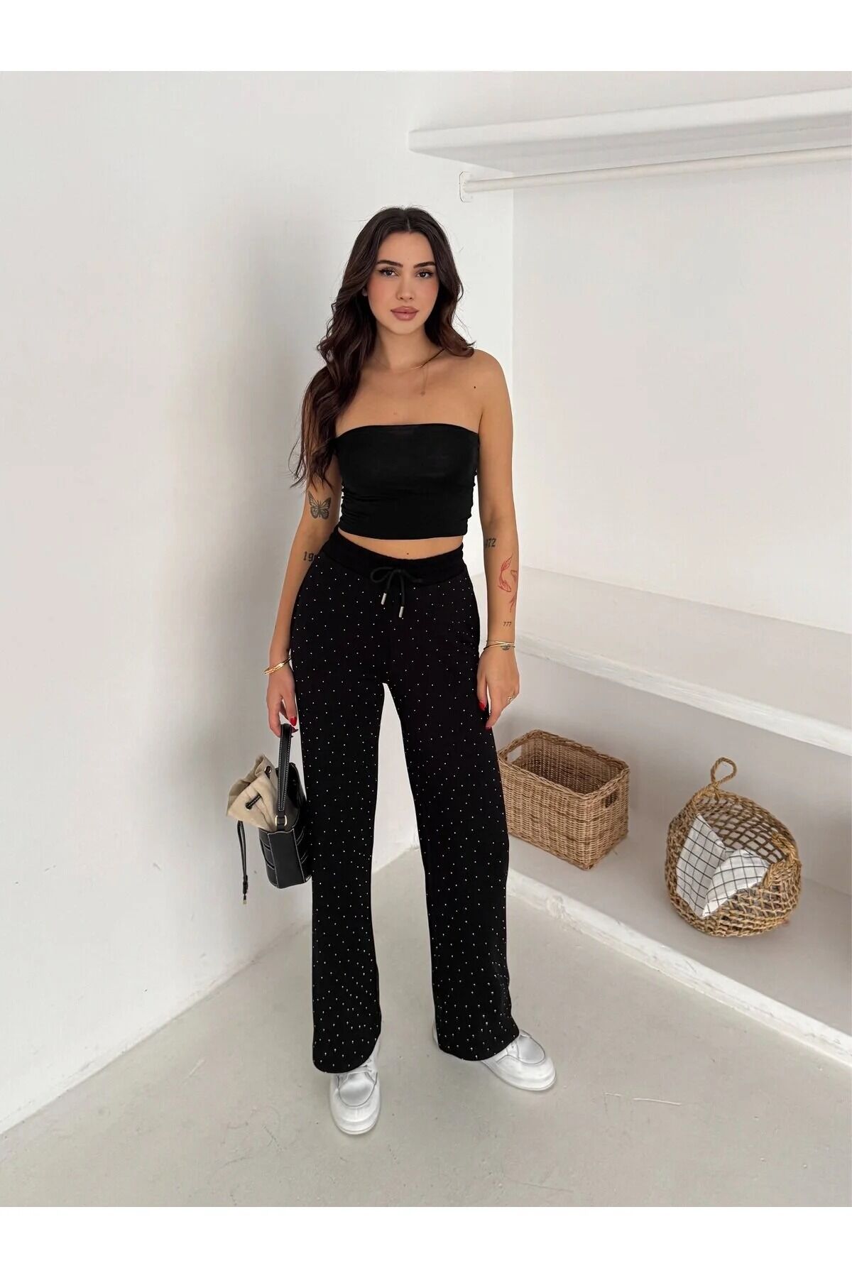 Beli lastikli relaxed pantolon modeli, rahat kesimi sayesinde gün boyu konfor sağlayan modern bir tasarımdır. Feminen tarzı ön plana çıkaran parıltılı detaylar, modeli hem günlük hem şık kombinlerde dikkat çekici hale getirir. Bol paça kesimi modern bir görünüm oluştururken, bağcıklı kemer yapısı belinizi dilediğiniz gibi ayarlamanıza imkân tanır. 2 adet cepli tasarımı günlük kullanım için pratiklik sağlar. Orta kalınlıktaki poliamid karışımlı esnek kumaş, dört mevsim rahatlık sunar ve hareket özgürlüğünü artırır. Astarsız yapısı sayesinde hafif ve nefes alabilir bir formdadır. Winmoda tarafından satışa sunulan bu pantolon, feminen şıklığı sevenler için kusursuz bir tercihtir.