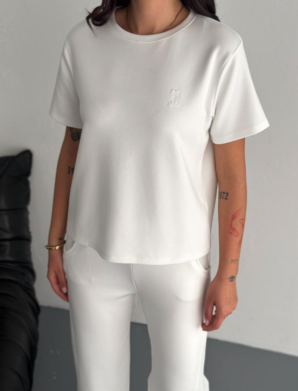 Kadın Tavşan Nakışlı Hafif Baggy Kısa Kollu Günlük Takım 2464 XL - BEYAZ