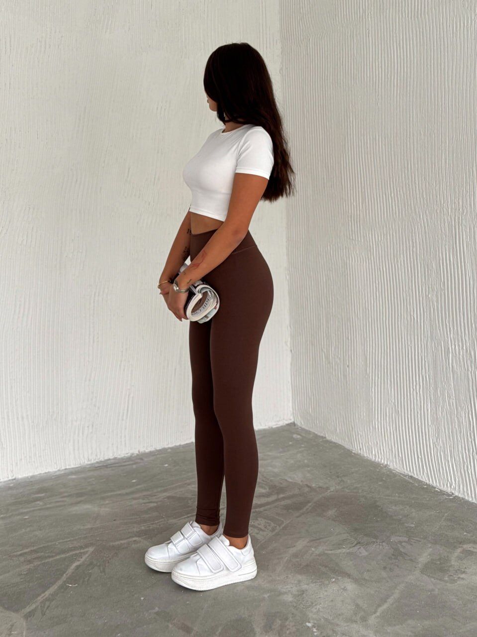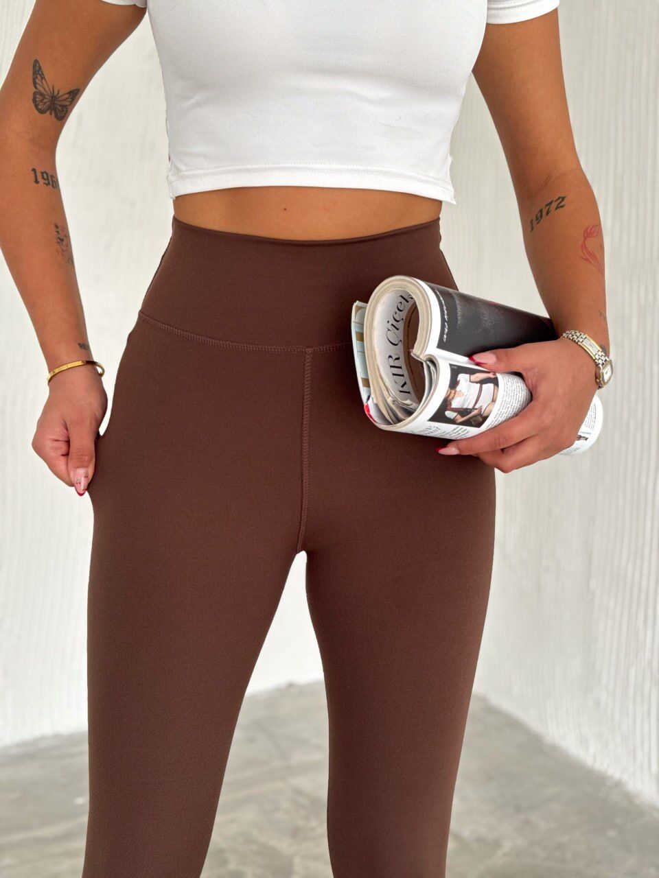 Kadın Kahverengi Renk Dokulu Yüksek Bel Toparlayıcılı Tayt 2297 S