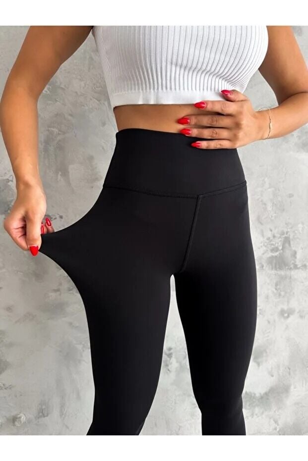 Kadın Dokulu Yüksek Bel Toparlayıcılı Tayt 2297 S - SİYAH