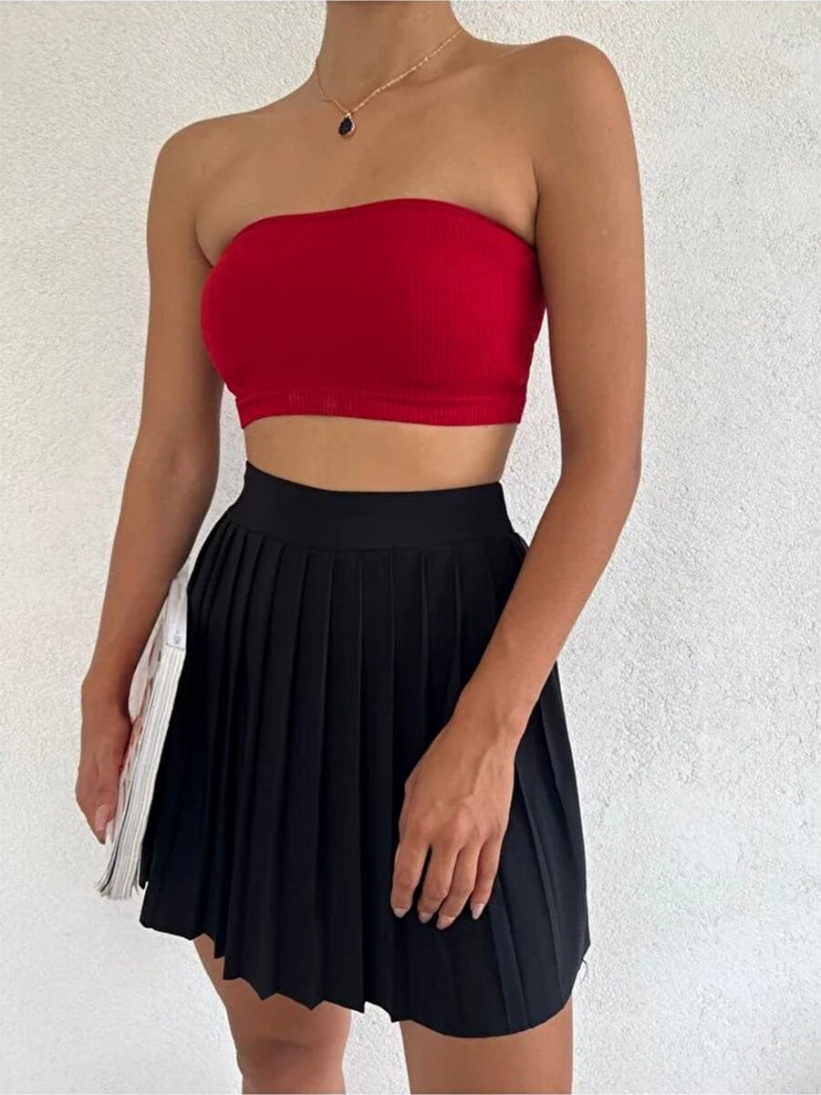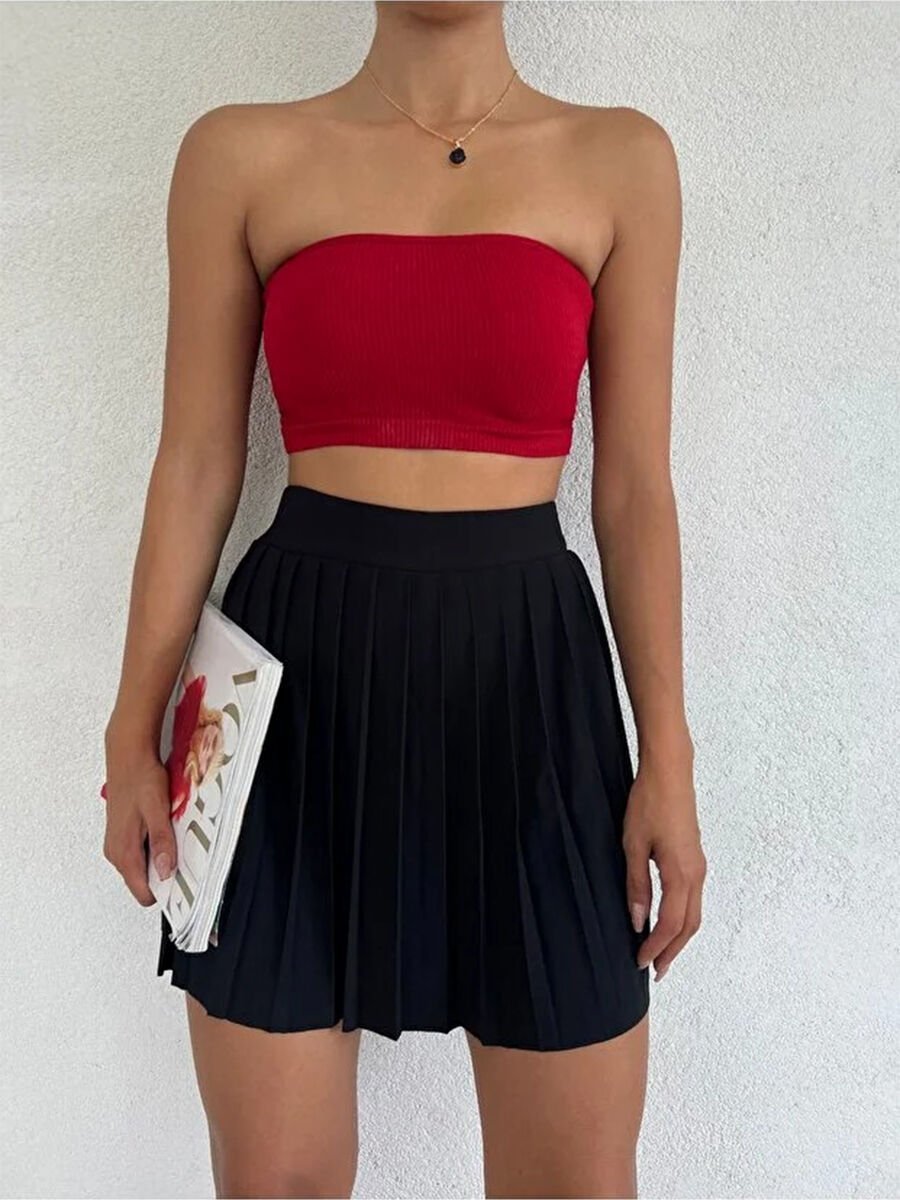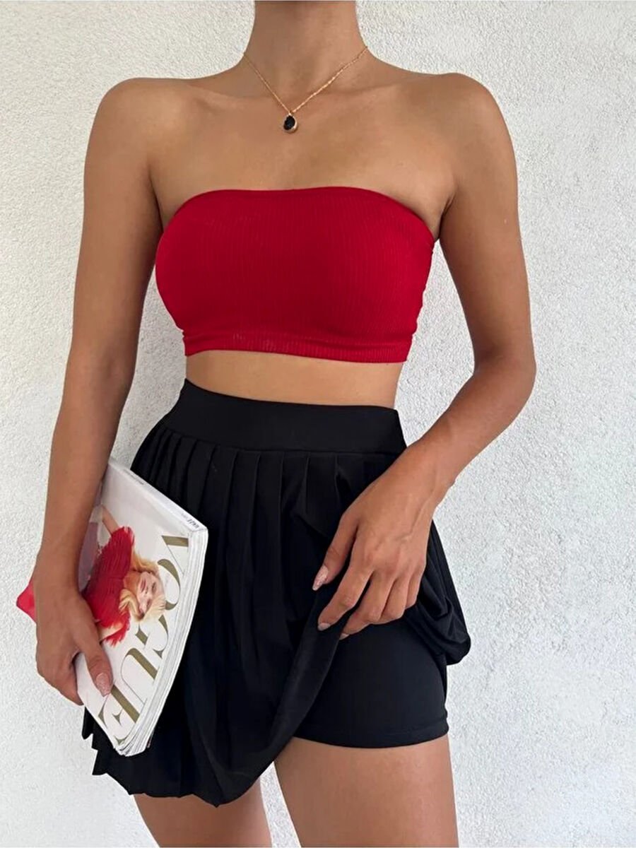 Kadın İçi Taytlı Tenis Eteği, spor yaparken konfor ve şıklığı bir arada arayan kadınlar için tasarlanmıştır. Mini boyu ve beli lastikli yapısı sayesinde rahat bir kullanım sunarken, esnek spandeks kumaşı hareket özgürlüğünü destekler. Dokuma kumaş yapısı gün boyu hafiflik hissi verir ve formunu korur.