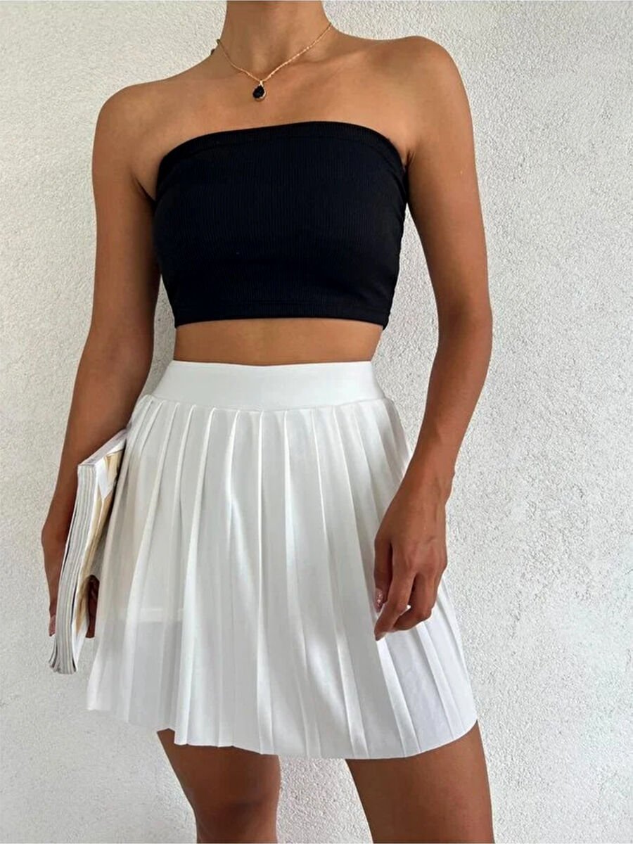 Kadın İçi Taytlı Tenis Eteği M - BEYAZ