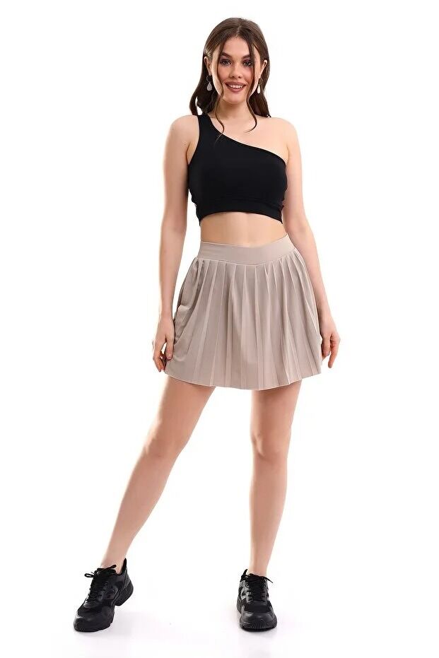 Kadın İçi Taytlı Tenis Eteği XL - BEJ