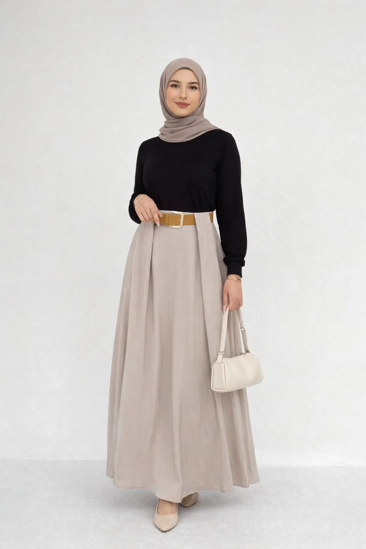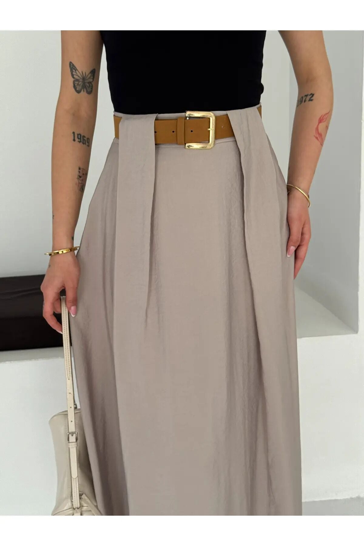 TESETTÜR ETEK-PİLEDEN KEMERLİ / DOKULU KUMAŞ MAXİ BOY ETEK 6242 XL - BEJ