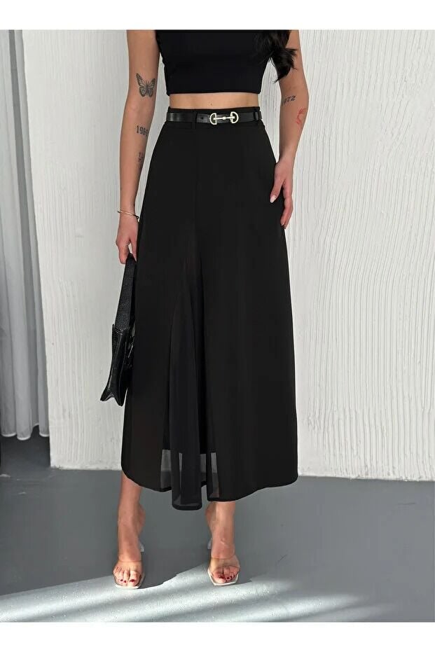 Tül Detaylı Kloş Etek – Siyah Kemerli Maxi Boy Şıklık