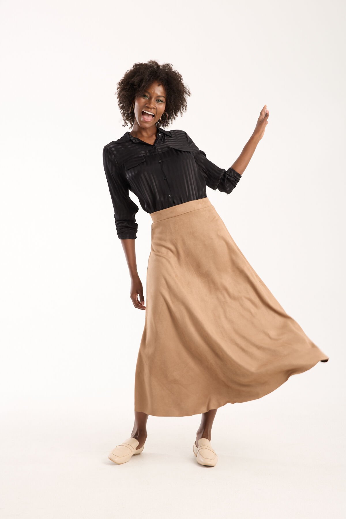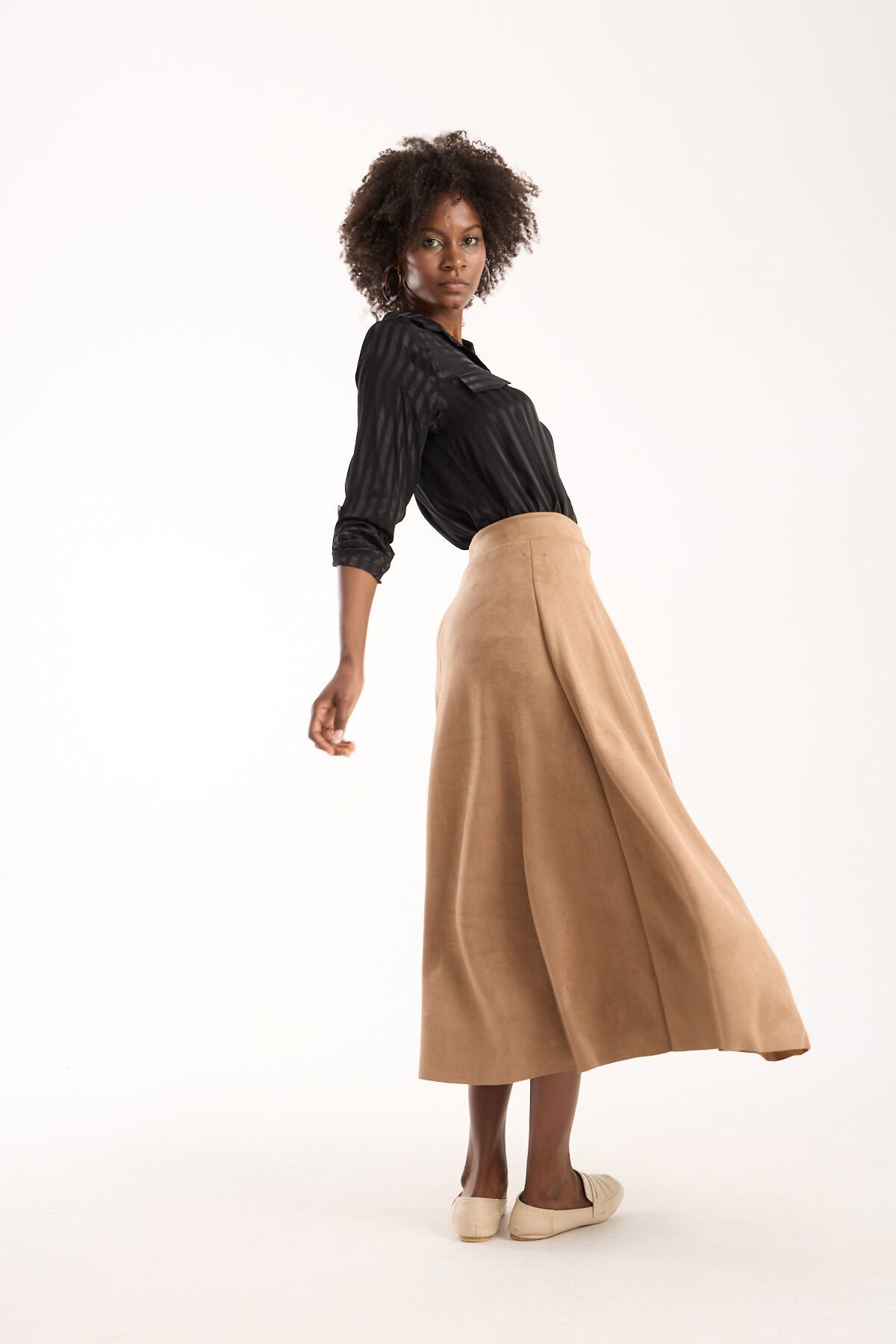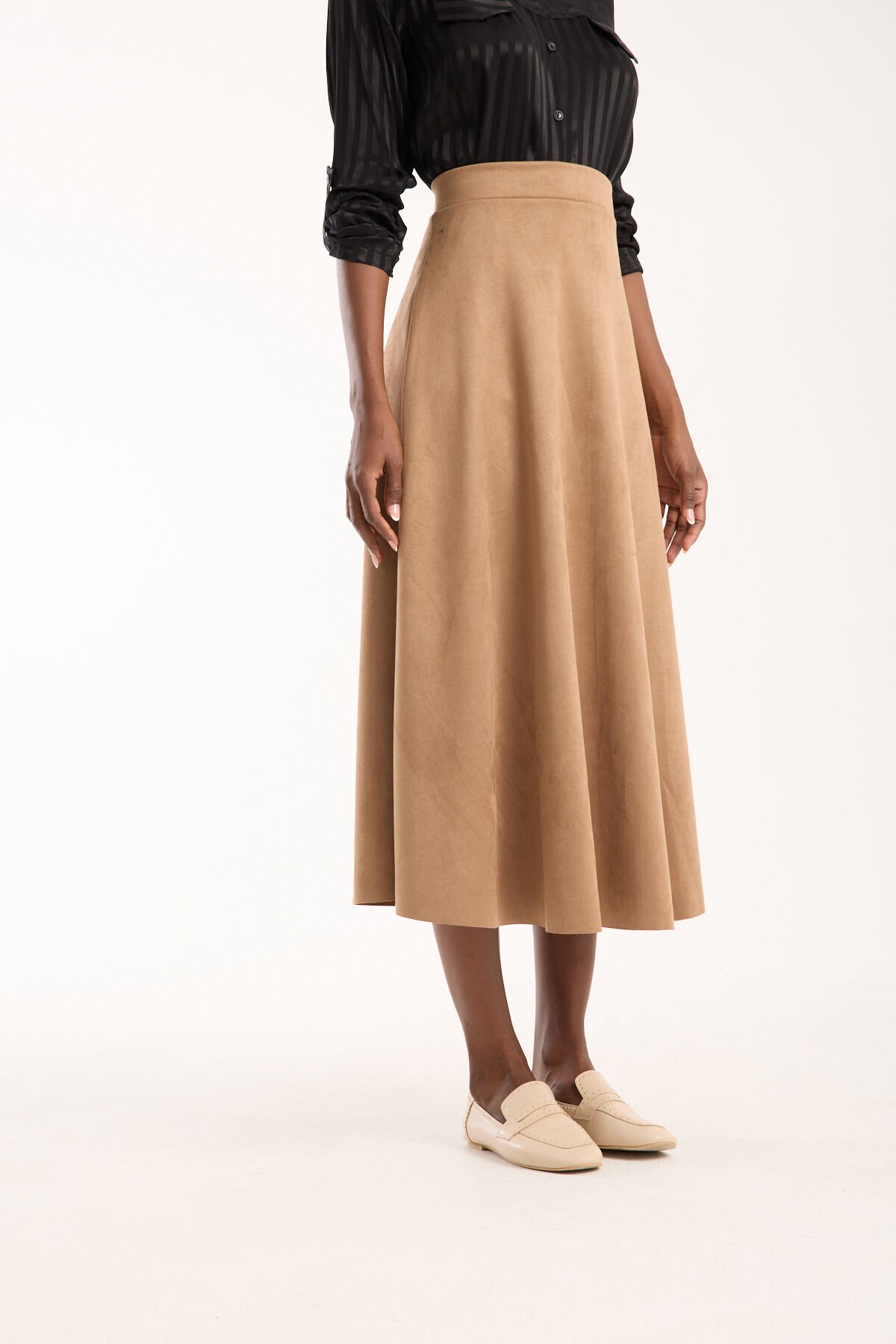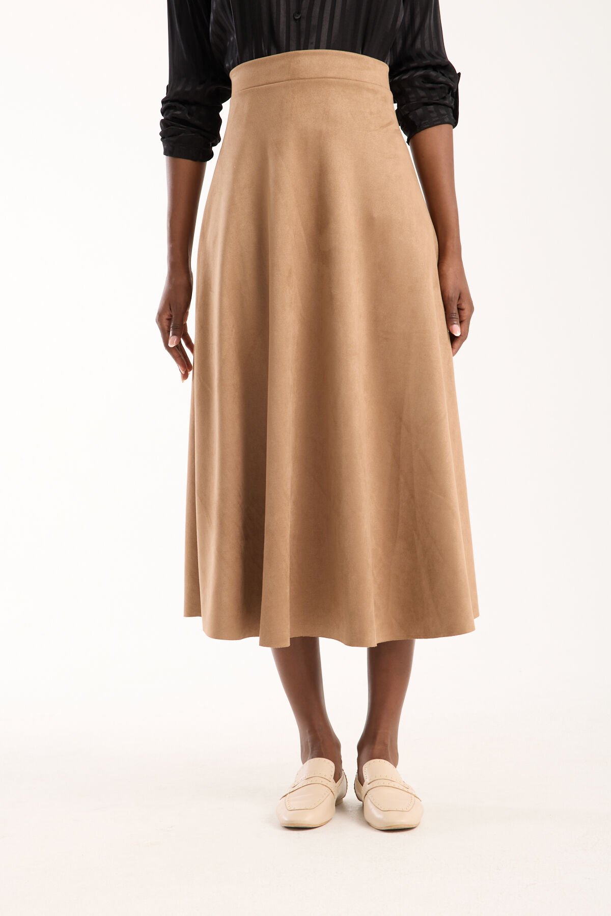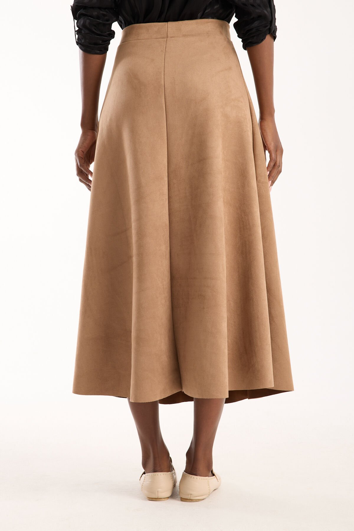 Kadın 90cm Uzun Tam Boy Kloş Süet Etek 2426 BEJ - S