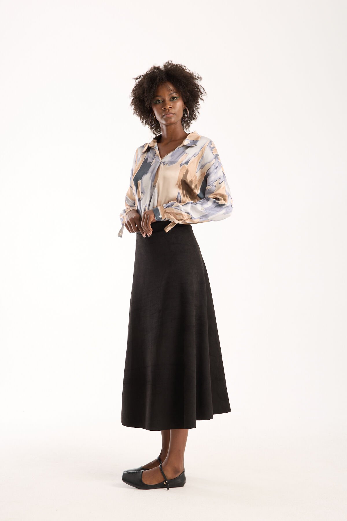 Kadın 90cm Uzun Tam Boy Kloş Süet Etek 2426 SİYAH - L