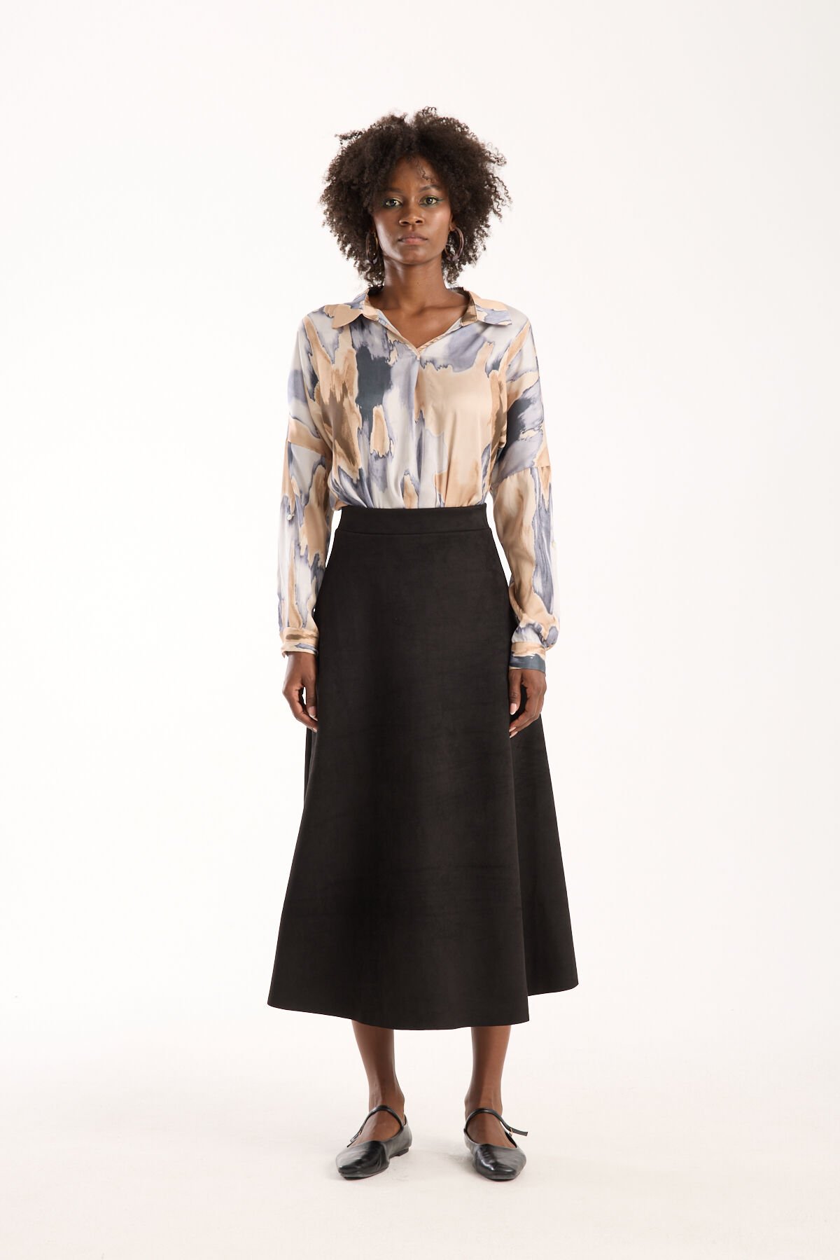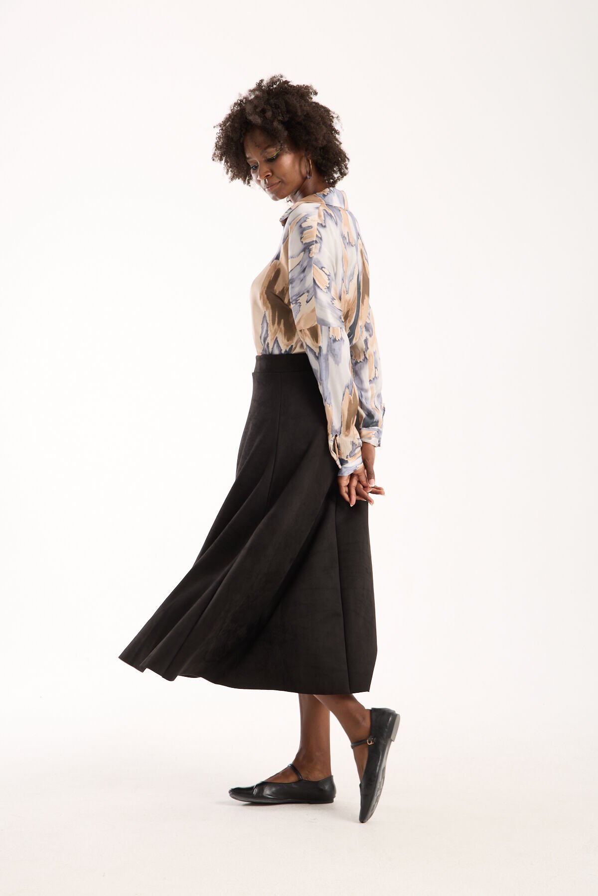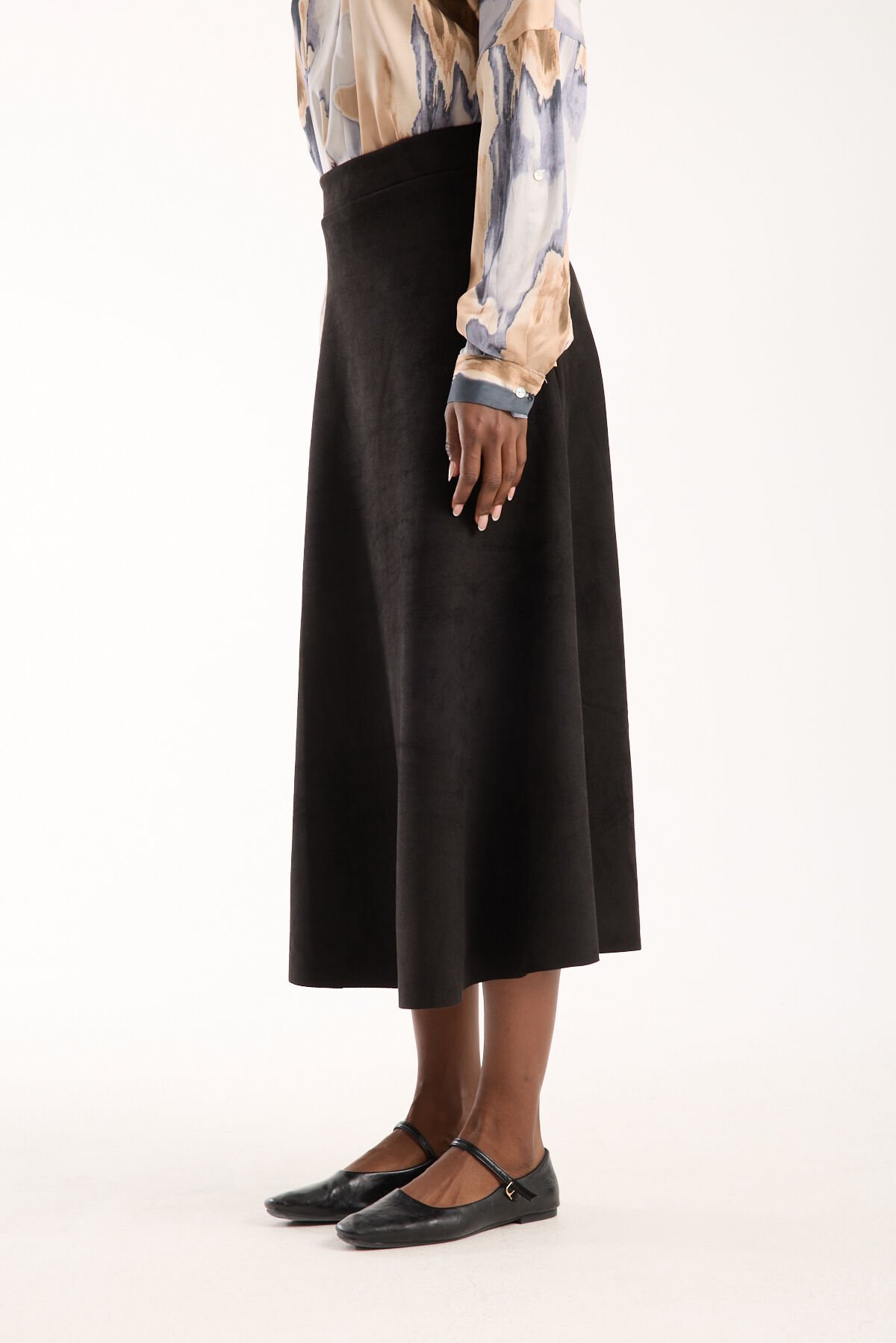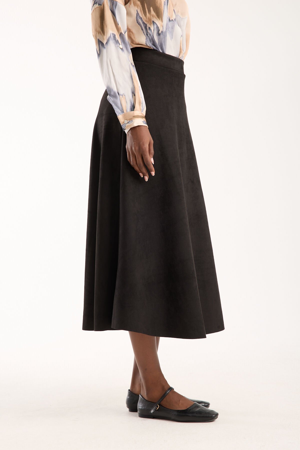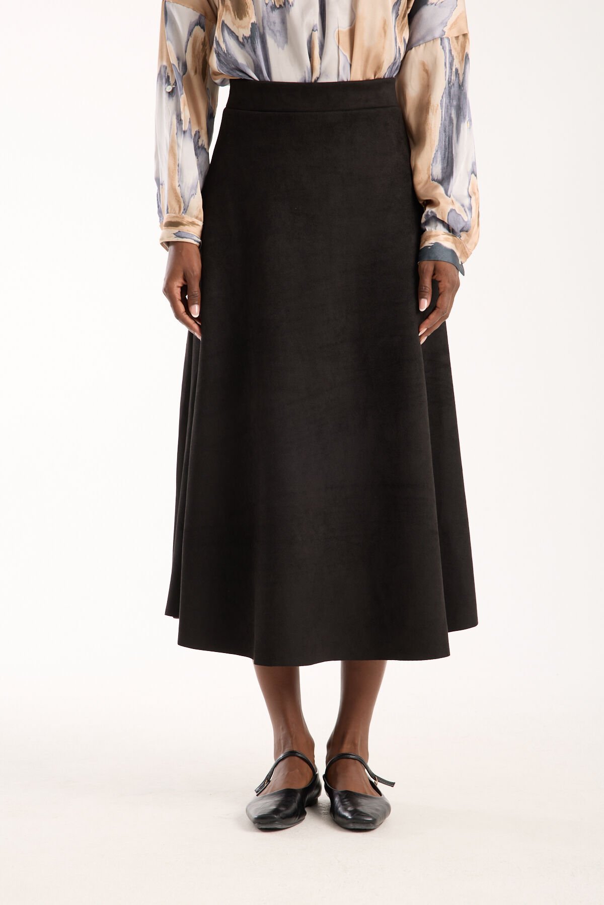 Kadın 90cm Uzun Tam Boy Kloş Süet Etek 2426 SİYAH - S