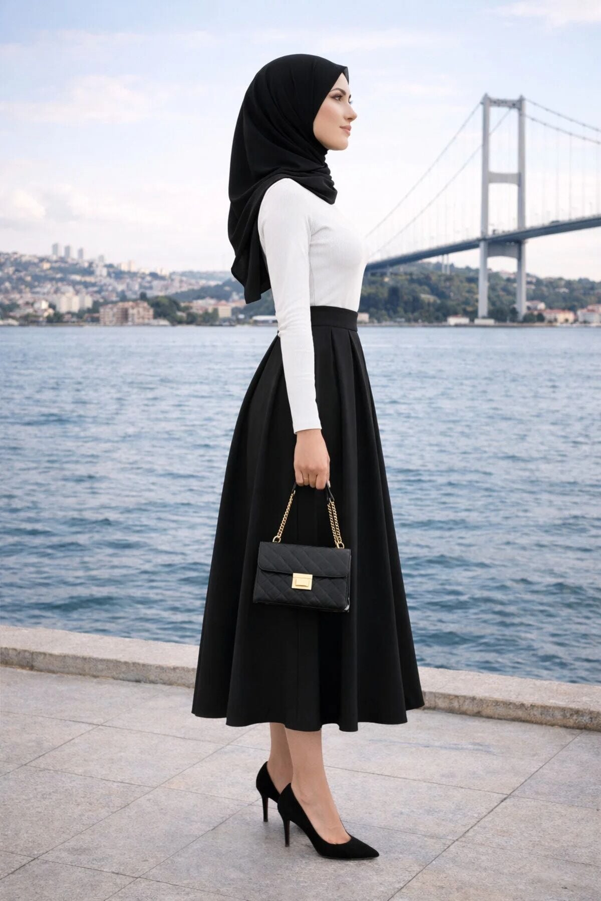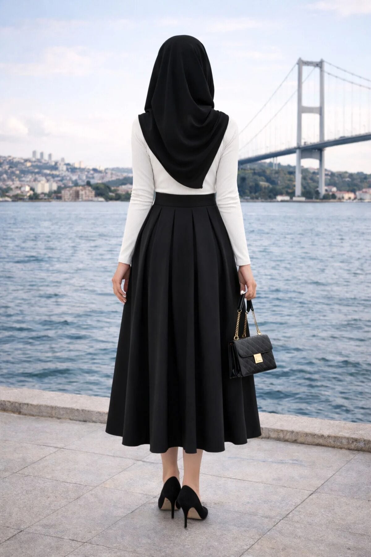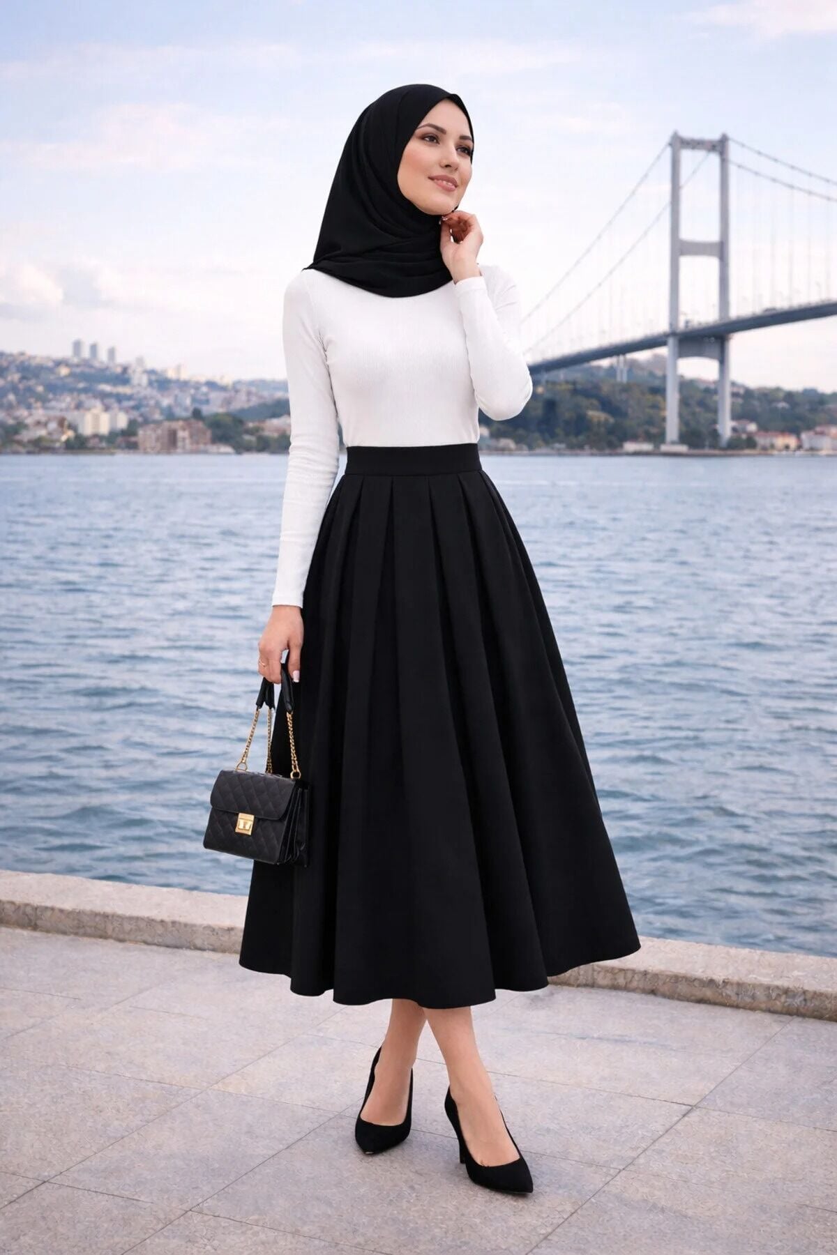 Office personası için ideal bir tercih olan bu pileli kahverengi etek, beyaz gömlekler veya şık ceketlerle kombinlenerek profesyonel bir görünüm oluşturur. Tüm sezonlarda rahatlıkla tercih edebileceğiniz bu parça, tesettür giyim koleksiyonunuzun en joker ve şık parçalarından biri olacak.