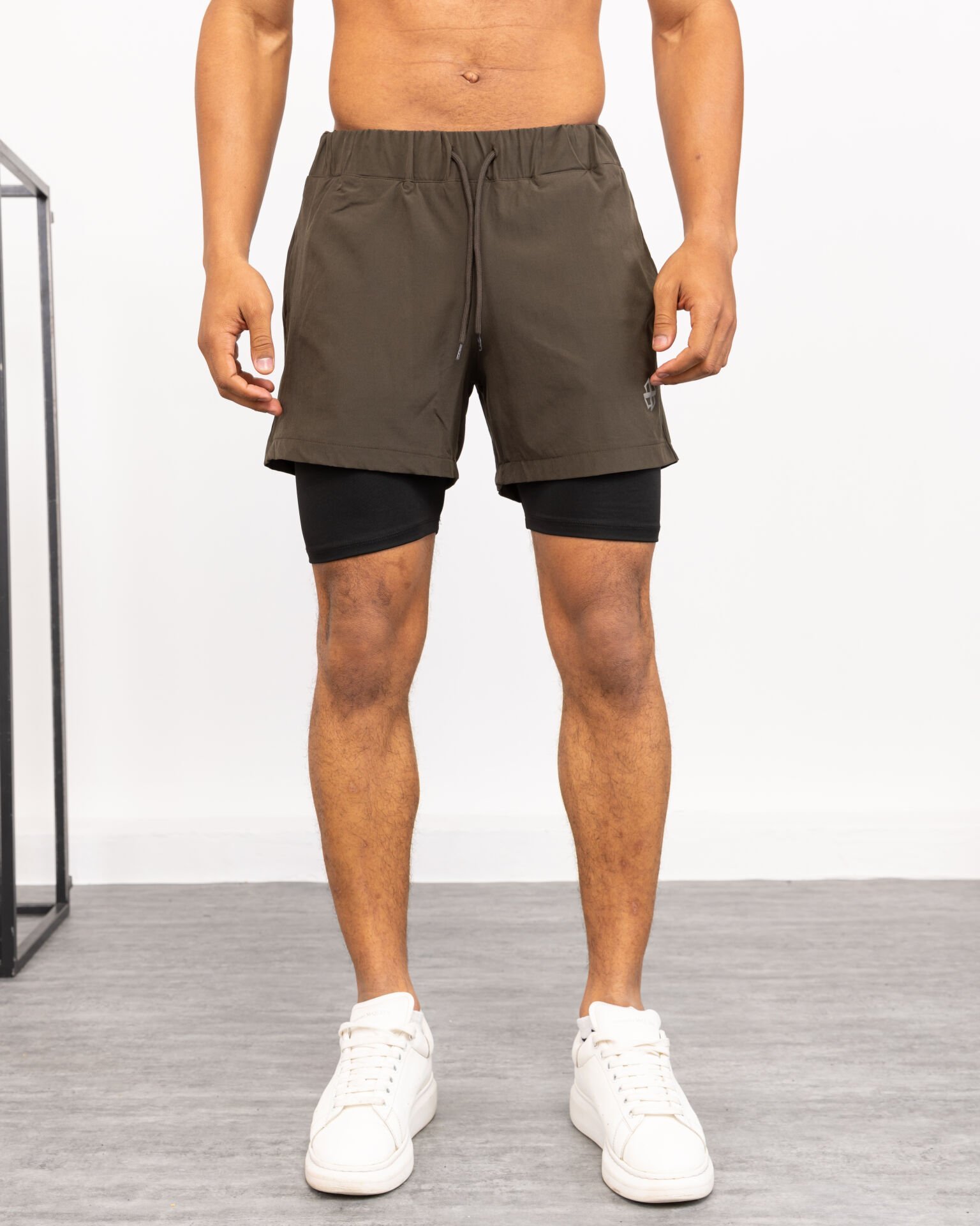 Winmoda İçten Taytlı Erkek Spor Şortu – Cepli Esnek Performans Model HAKİ - XS