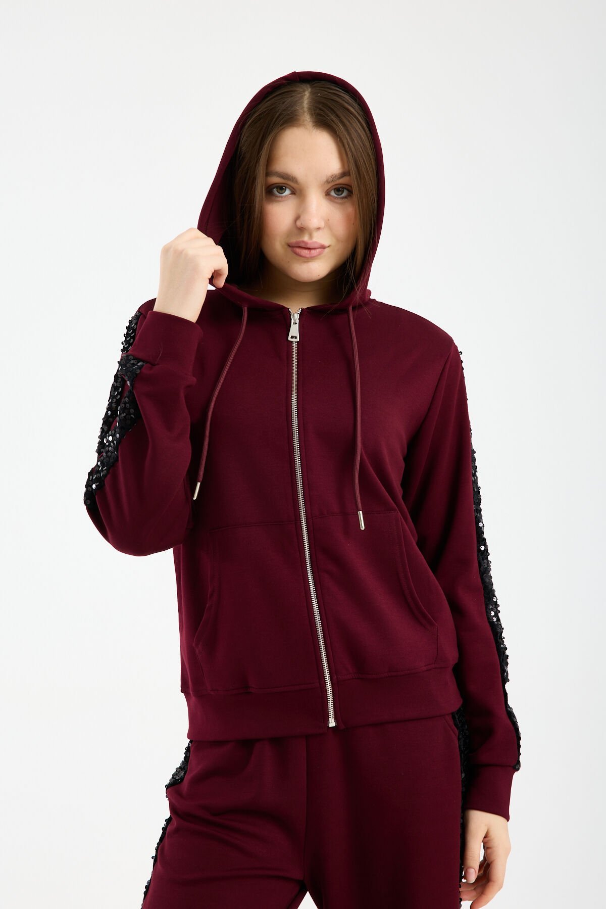 Kadın Günlük Payetli Modal Kumaş Takım 6228 M - BORDO