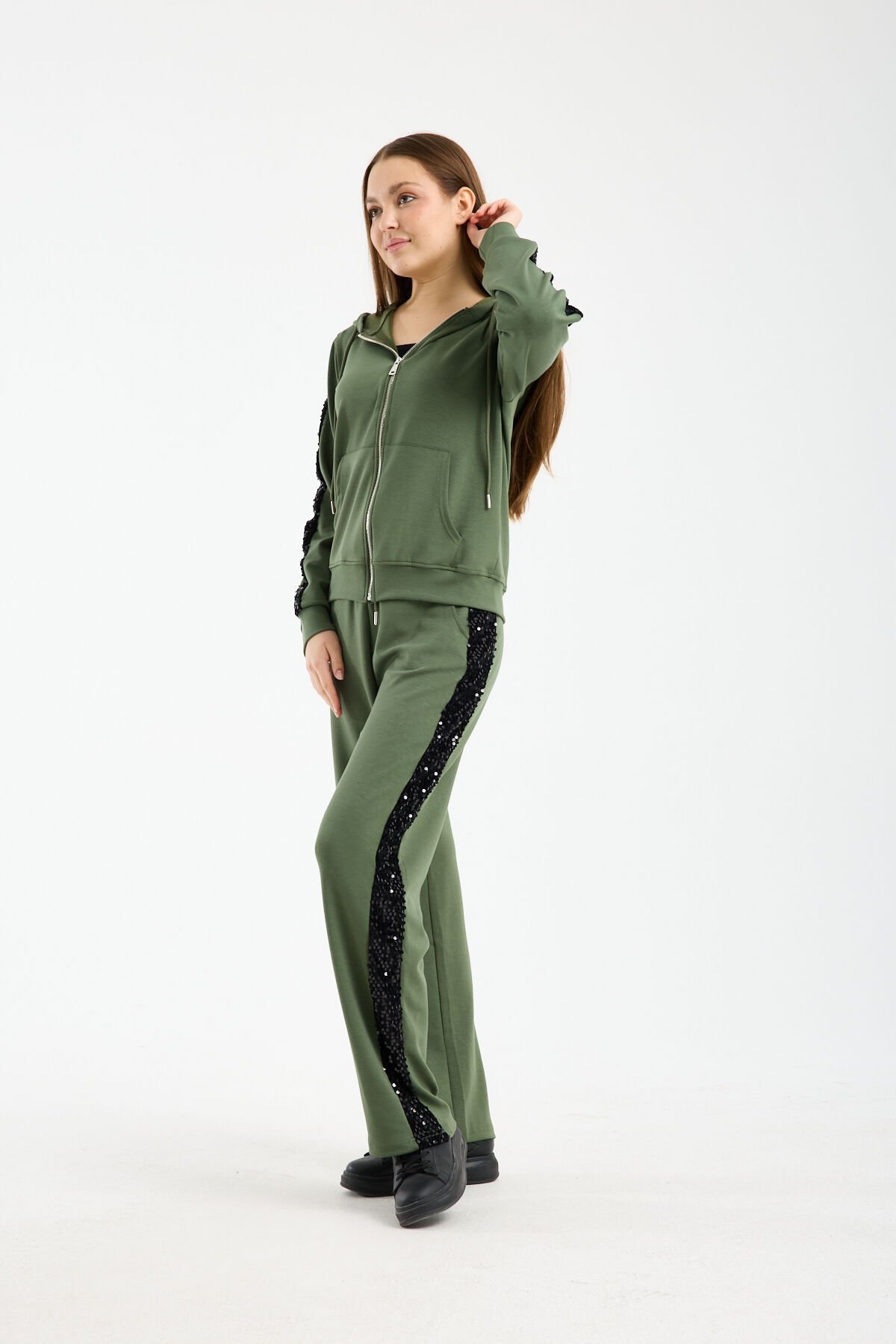 Kadın Günlük Payetli Modal Kumaş Takım 6228 M - HAKİ