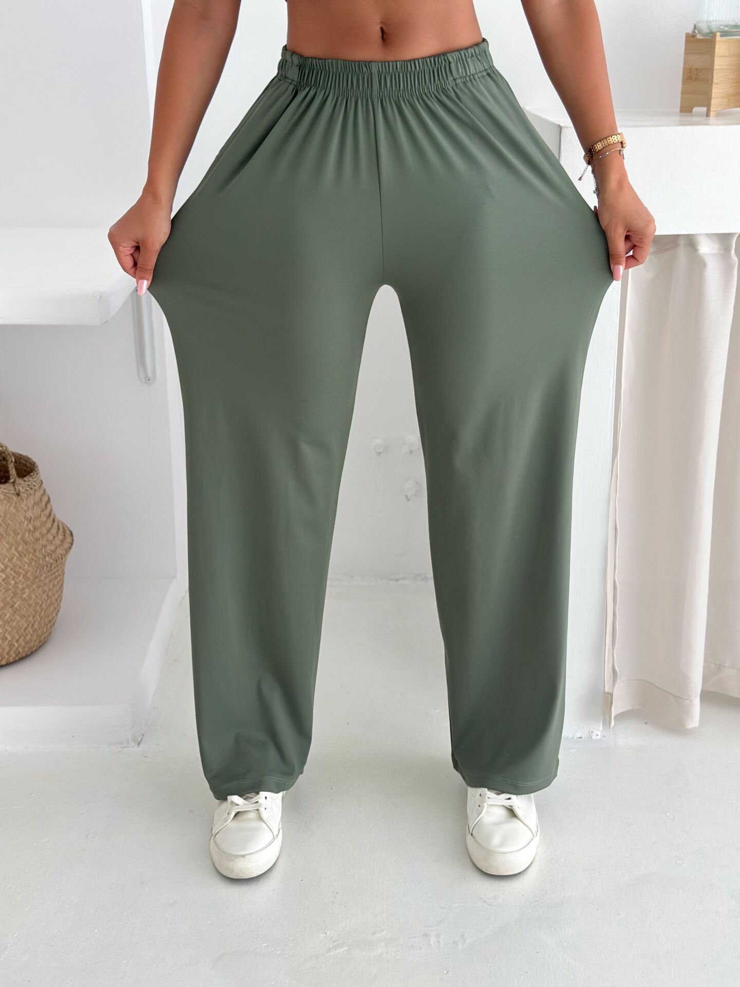Yumuşacık dokulu ve likralı kadın günlük takım, yaz sıcaklarında maksimum konfor sunmak için tasarlanmıştır. Üst parçası yarasa kol geniş bluzdan, alt parçası ise cepli baggy kesim pantolondan oluşur. %90 Polyester – %10 Likra karışımı kumaşı sayesinde esnek, hafif ve ferah bir kullanım sağlar. Geniş paça formu modern bir siluet sunarken bisiklet yaka detayı sade ve şık bir görünüm oluşturur. Astarsız ve baskısız yapısı sayesinde günlük kullanım için ideal olup Cool & Comfort persona ruhunu yansıtır. Kemersiz yapısı rahatlığı artırır; yüksek beli ile duruşu toparlayarak zarif bir görünüm sunar. Tek parça paket içeriği sayesinde pratik bir alışveriş deneyimi sağlar. Yaz sezonuna özel renk ve dokularla Winmoda tarafından üretilmiştir.