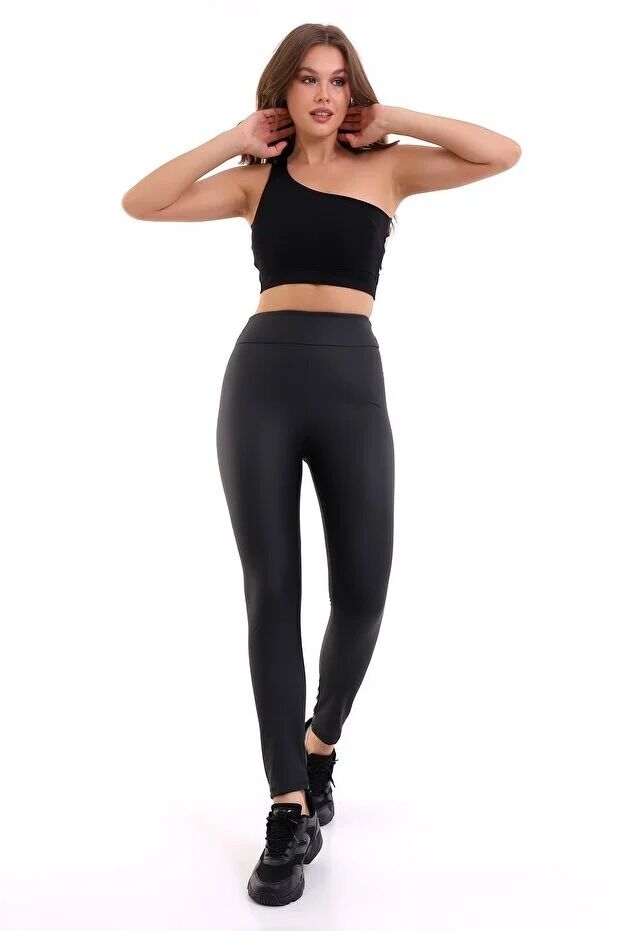 Yüksek Bel Mat Deri Tayt 1545 S - SİYAH