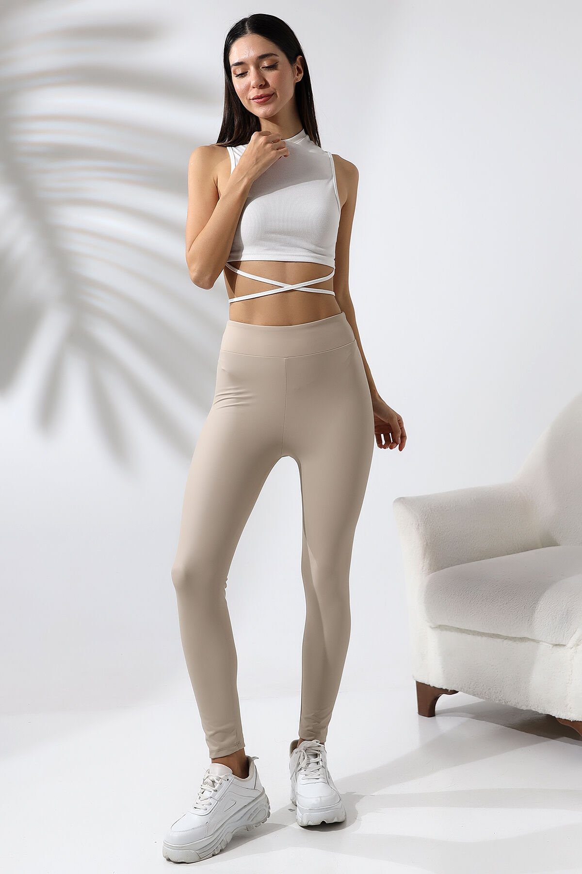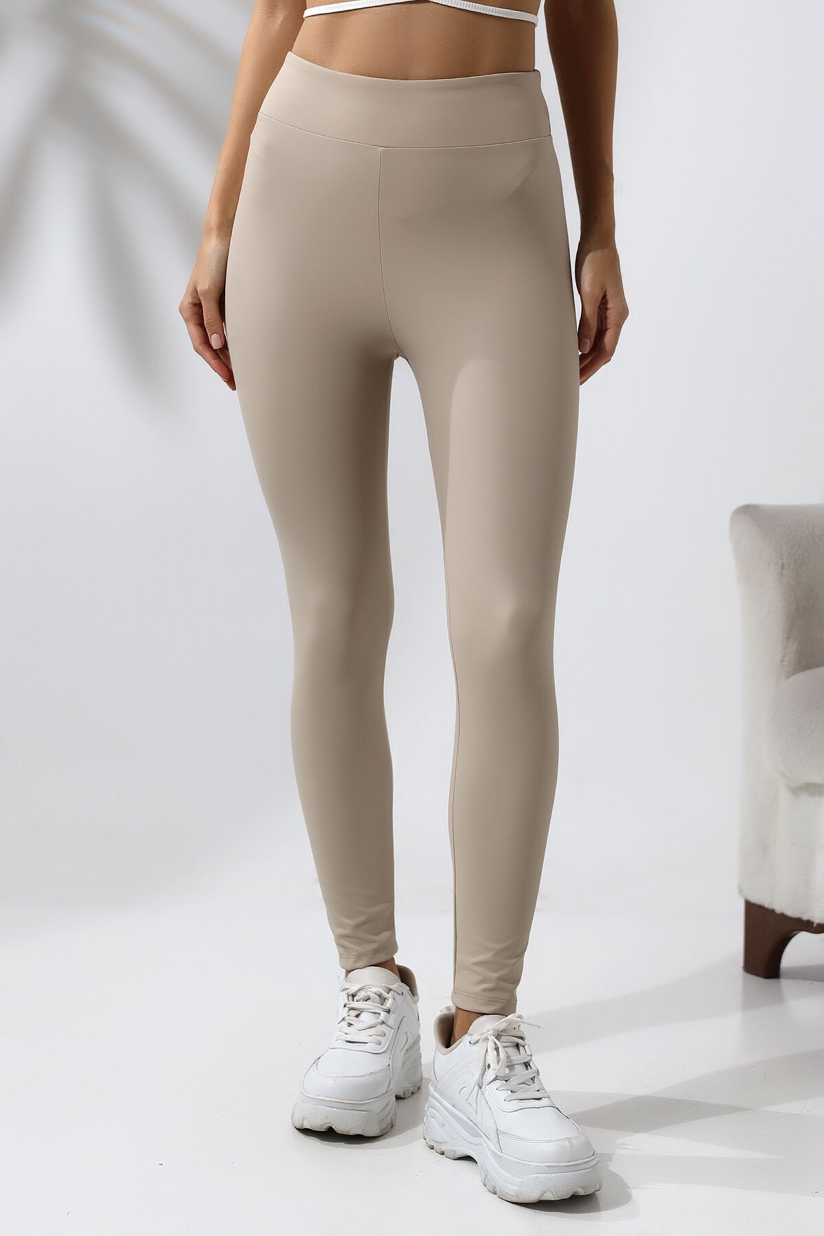 Yüksek Bel Mat Deri Tayt 1545 XL - EKRU
