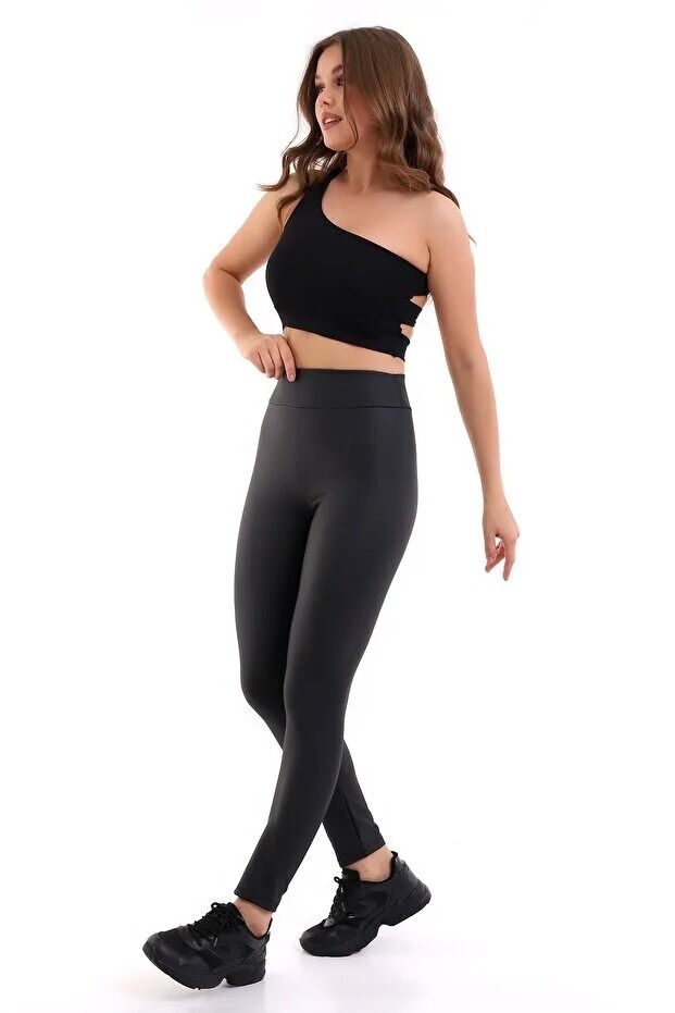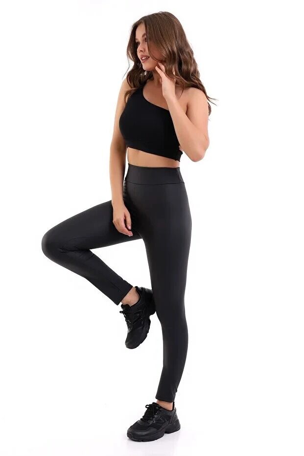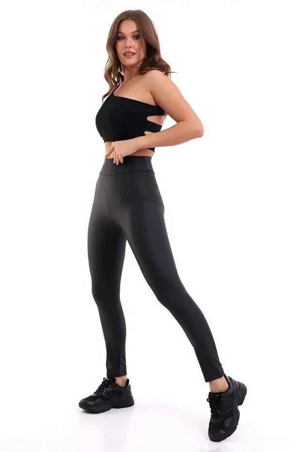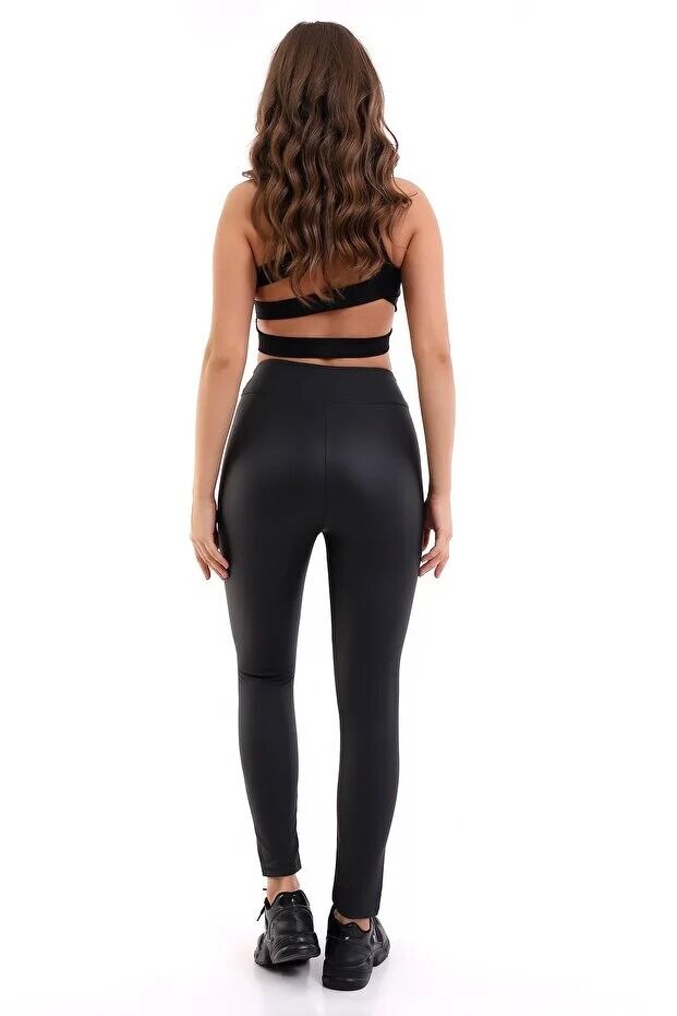Yüksek Bel Mat Deri Tayt 1545 XL - SİYAH