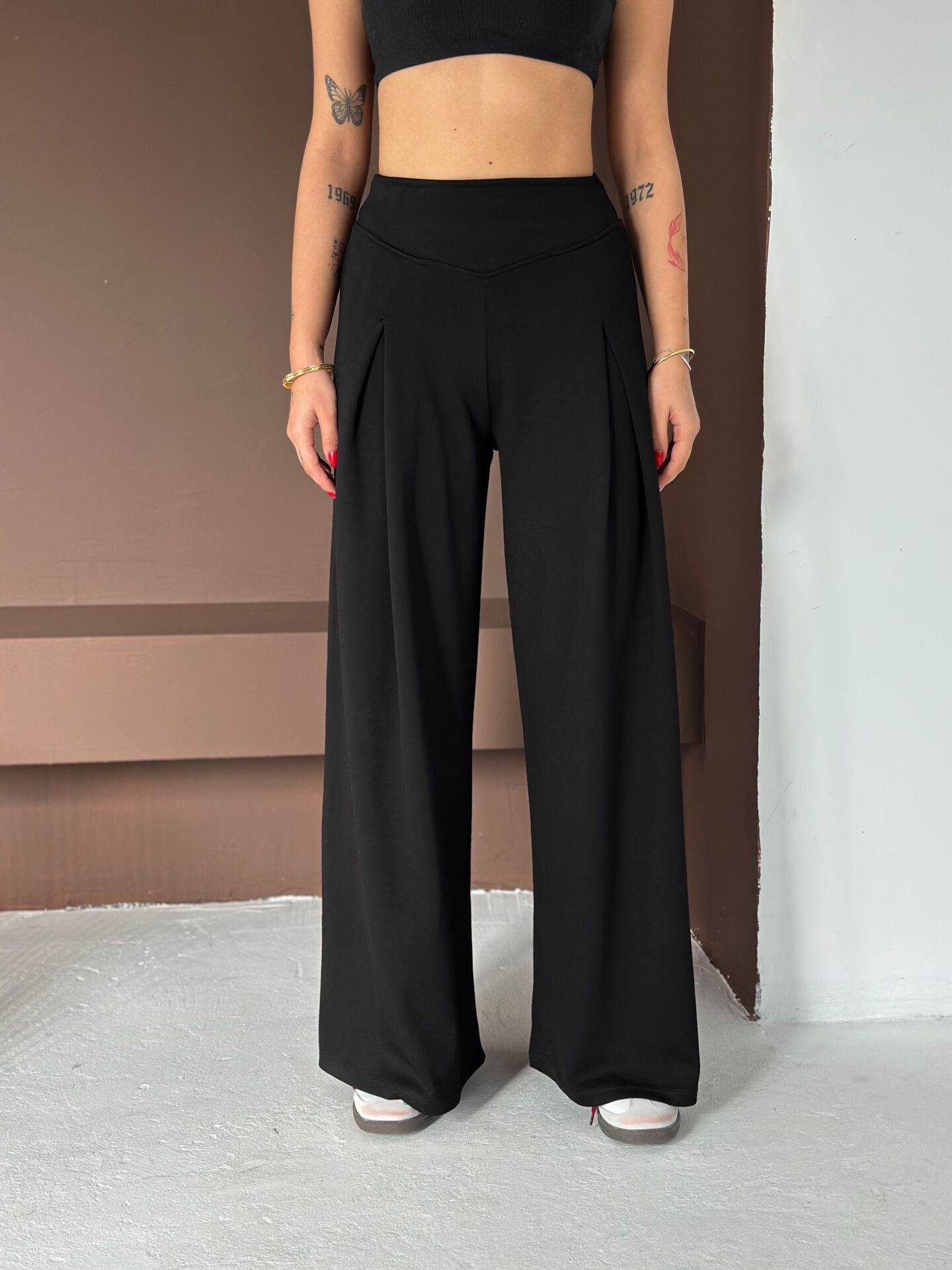 Kadın Yumuşak dokulu Ön Pilili Modal Geniş Pantolon 2597 M - SİYAH