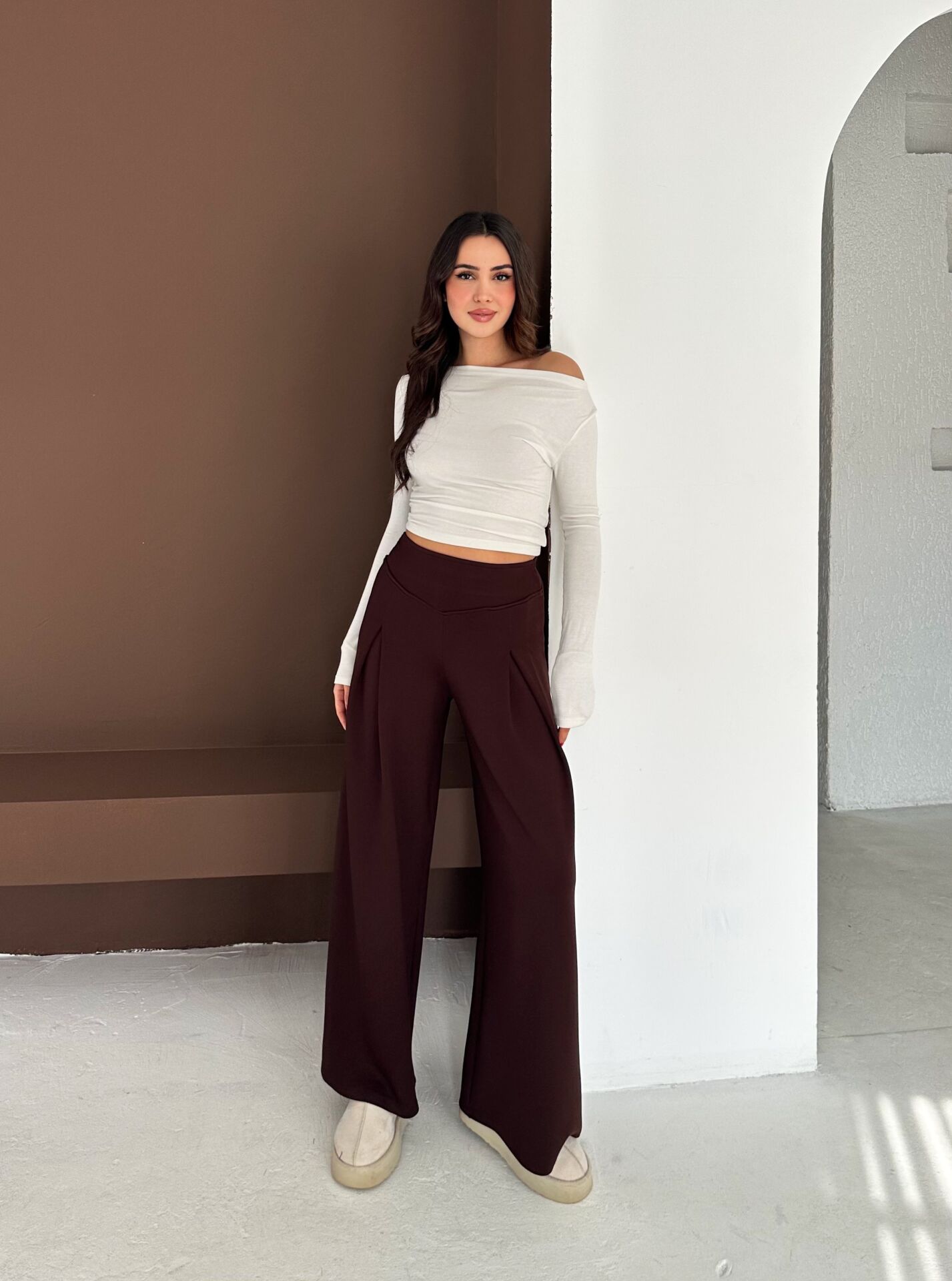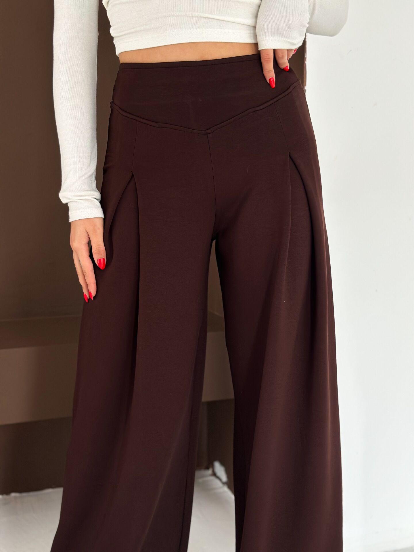 Kadın Yumuşak dokulu Ön Pilili Modal Geniş Pantolon 2597 S - KAHVERENGİ