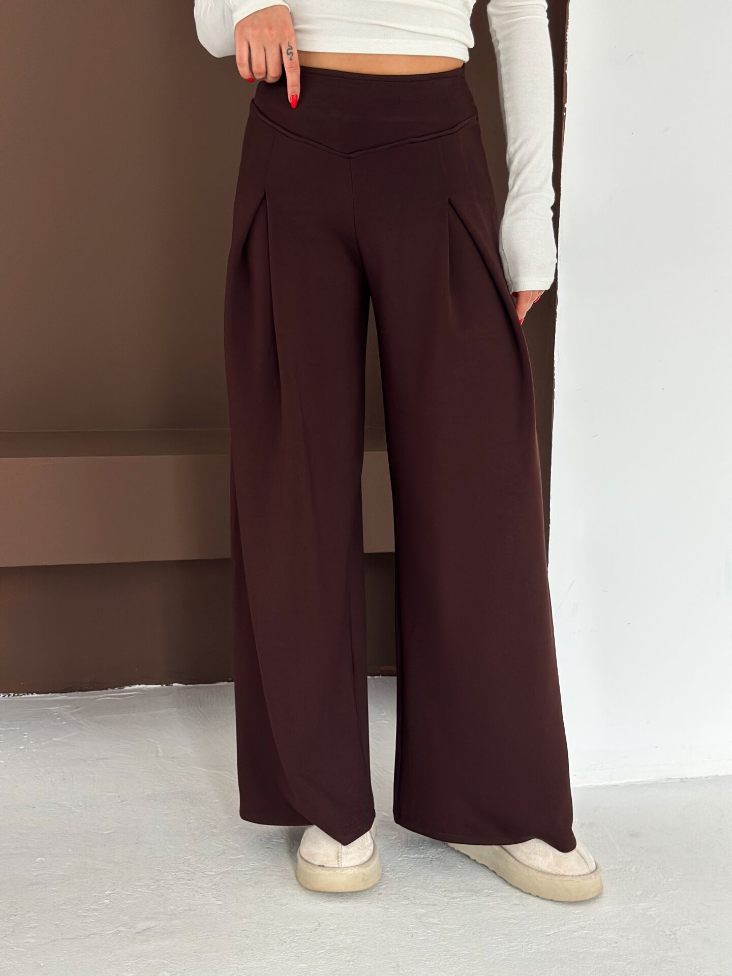 Kadın Yumuşak dokulu Ön Pilili Modal Geniş Pantolon 2597 XL - KAHVERENGİ
